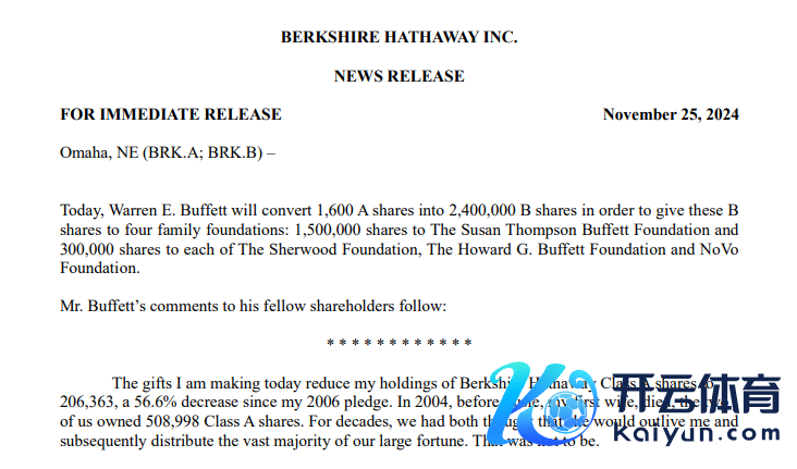 以下为当地时分11月24日发布的巴菲特公开信原文的部分截取——