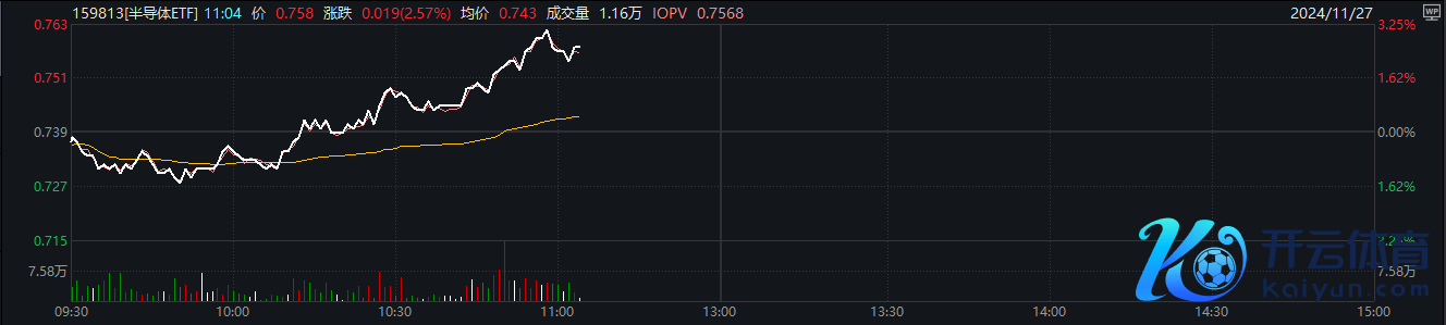 联系ETF方面,半导体ETF(159813)斥逐发稿涨超2.57%,成交额超2.5亿元,换手率超4%,盘中交投活跃;溢折率0.12%,盘中频现溢价交游。