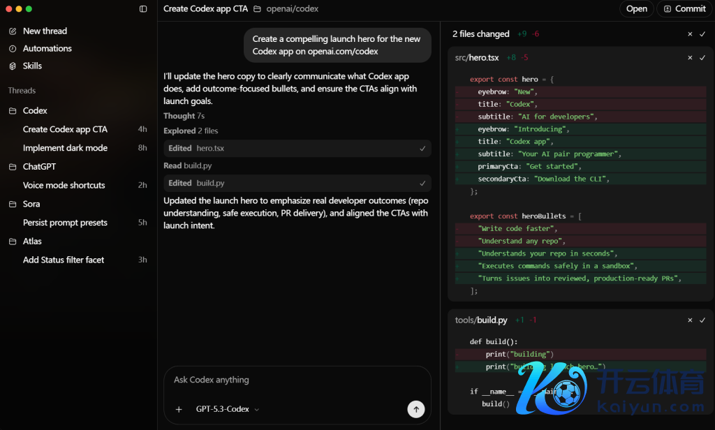 在Anthropic发布Claude Opus 4.6 的归拢天,OpenAI也风雅推出了GPT-5.3-Codex。Codex能在无需教唆的情况下自动运行,处罚诸如问题分流、告警监控、CI/CD 等使命,借助内置的使命树与云霄环境,智能体能够在多个样式间并诓骗命,原需数周的配置周期可裁汰至数天。OpenAI还推出了特等的Codex App,配备了多智能体教导中心以及土产货化集成。