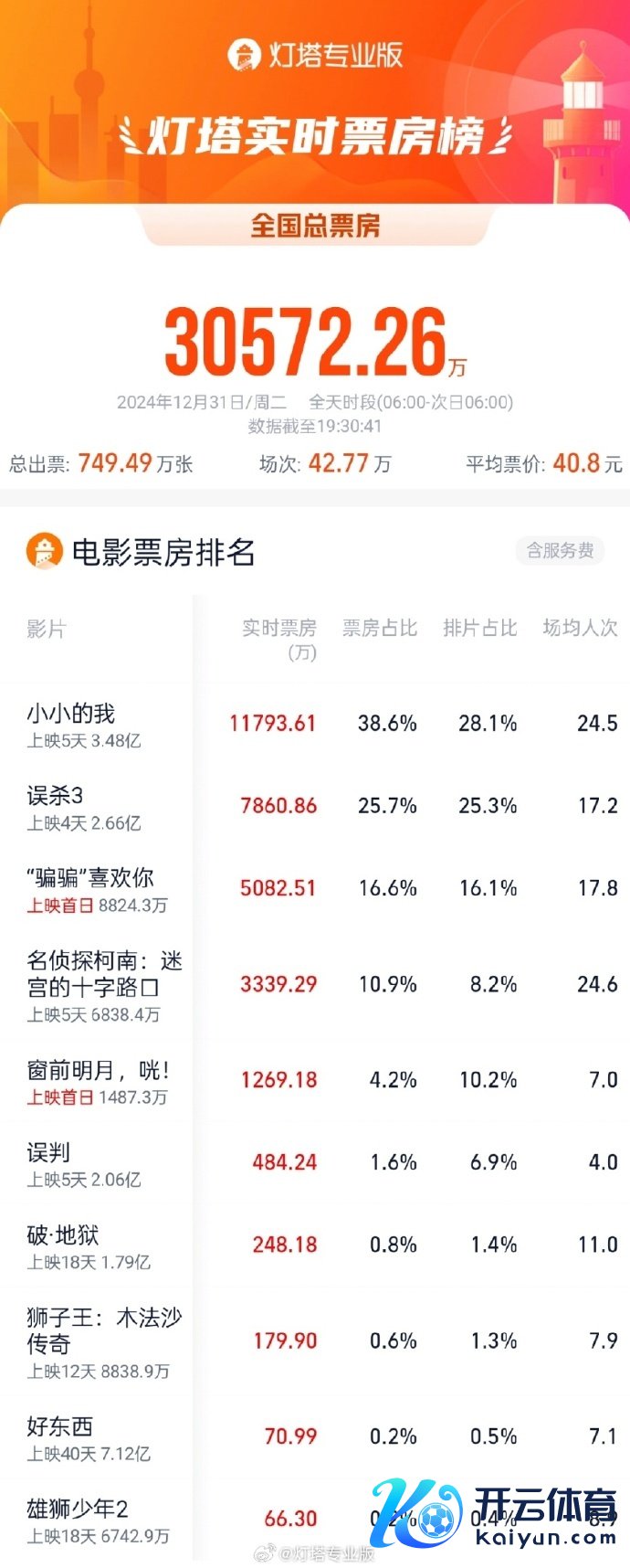 据灯塔专科版开yun体育网,2024年跨年档(12月31日)大盘票房打破3亿元。