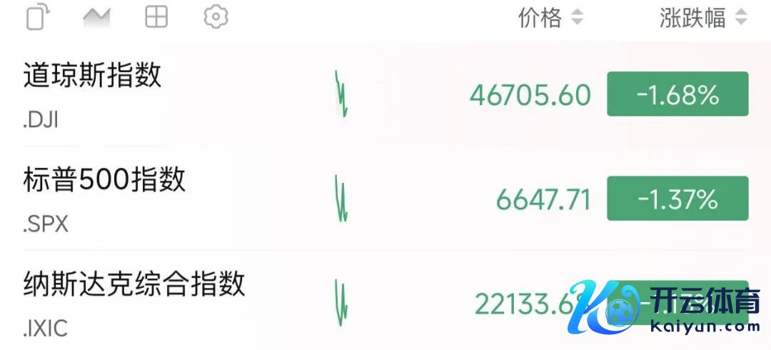 好意思股三大股指全线大跌Kaiyun科技股份有限公司。