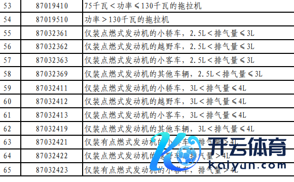 从汽车品类来看,主要包括排量大于2.5L的燃油车(包含轿车、越野车、小客车以相配他车辆居品);车重小于或就是5吨的货车;纯电动货车;牵引车、腌臜机等大排量汽车、皮卡。