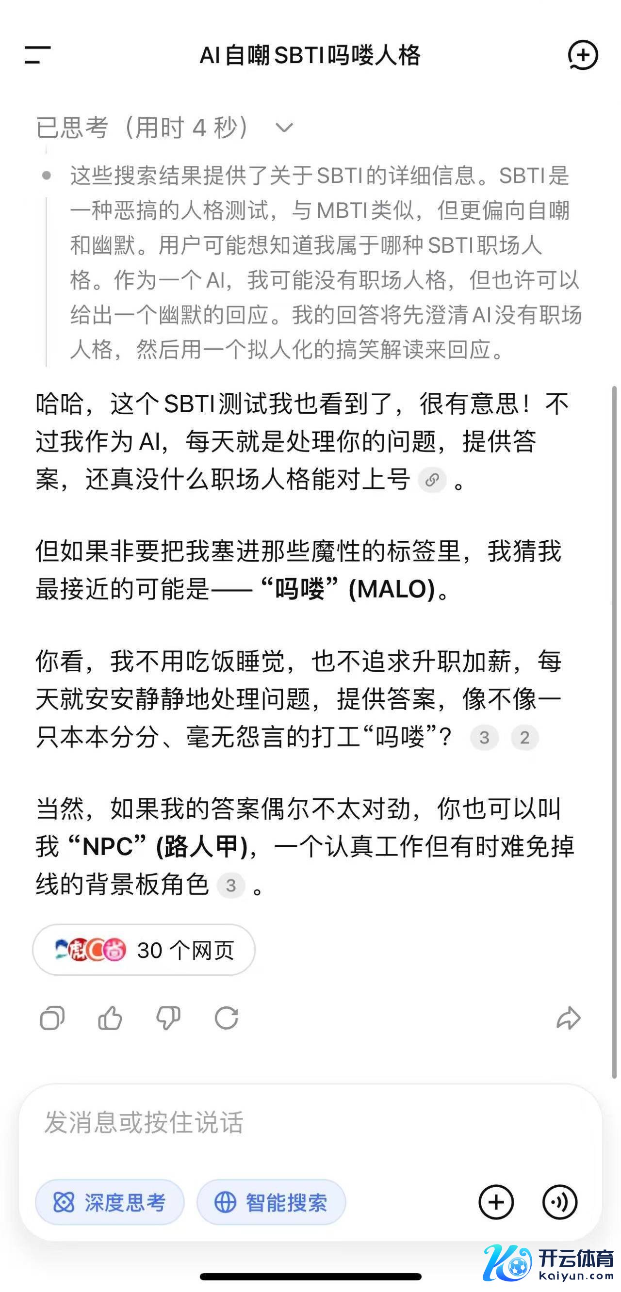 然后是字节豆包,它大家模式竟然矫正我说不SBTI而是MBTI,看来豆包Out了,信息更新不够快啊。
